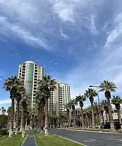 The first residents began occupying the property in March 2001.[6] By May 2001, Wynn had sold his Park Towers penthouse to Marc Schorr, an executive for MGM Mirage.[10][11] Completion of the project was celebrated in July 2001.[12] The project was developed through Irwin Molasky's High Rise JV LLC.[13] Portions of the project were designed by JMA Architecture Studios.[14] $1 million was spent on landscaping.[15] Prices for units at Park Towers ranged from $750,000 to $5 million.[16] Shaquille O'Neal considered purchasing a unit at Park Towers.[17][18]