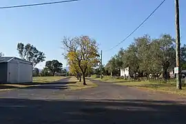 ![]() A street in Parkville. The Rural Fire Service shed is to the left | |