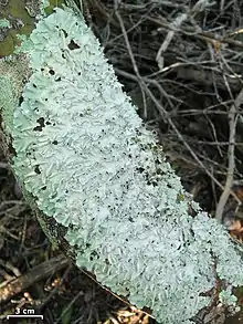 {{cite book}}: CS1 maint: location missing publisher (link) - Hale, Mason E. (1974). "New combinations in the lichen genus Parmotrema Massalongo". Phytologia. 28 (4): 334–339.