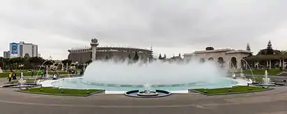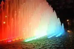The Magic Water Tour, inaugurated July 26, 2007, currently comprises the property of the Park of the Reserve. The project was initially criticized because of its costs and design, and that it constituted a complete renovation of a historically significant park. Additionally, others objected the charging of entrance fees to a public place (S/.4.00 for ages 5 and above, as of Jan 2011). Proceeds from this entrance fee were once being used to renovate the Municipal Theatre of Lima, which has since been reopened.[3] By March 1, 2008, the tour received its two millionth visitor.[2][4] The Magic Water Tour is currently the world record holder for the largest fountain complex in the world, consisting of 13 distinct fountains, many of which are interactive.[2][5] All of the fountains are lighted at night, many with continuously changing color schemes.[5][6]