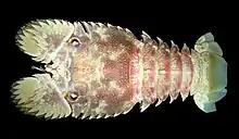 Parribacus perlatus, the Easter Island mitten lobster, is a species of slipper lobster found around Easter Island in the Pacific Ocean. The lobster is a traditional food source for the Rapanui where it is known as rape-rape.[2]