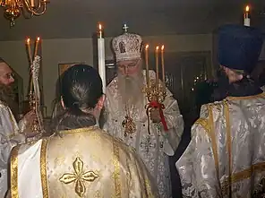 - Russian Orthodox bishop carrying a paschal trikirion (photo)