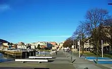 Pontevedra seafront promenade with the city