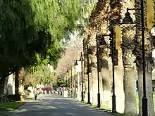 The paseo intersects the Paseo de San Carlos, the main east-west axis on campus.