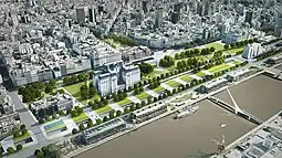 Paseo del Bajo included a park, named "Parque del Bajo", located between Belgrano and Corrientes avenues (north-south) and Paseo Colón and Huergo avenues (west-east), with an extension of 102,000 m2.[6]