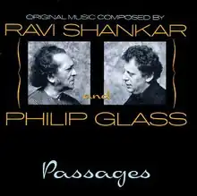 Passages is a collaborative chamber music studio album co-composed by Ravi Shankar and Philip Glass, released in 1990 through Private Music.[1] Consisting of arrangements by each of the composers around themes written by the other, the album's content is a hybrid of Hindustani classical music and Glass' distinct American minimal contemporary classical style.[2] The album reached a peak position of number three on Billboard's Top World Music Albums chart.