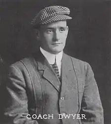 Dwyer was a graduate of the University of Pennsylvania. He lettered in football two seasons, 1906 and 1907, for Penn under coach Carl Sheldon Williams.[3] In 1906, Dwyer helped the Quakers to a 7–2–3 record. In 1907, Penn went 11–1, and was retroactively awarded a national championship by Parke H. Davis with other organizations naming Yale as champion.[4] These Penn teams were led by All-Americans August Ziegler at guard and Dexter Draper at tackle.[5]
