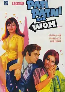 Pati Patni Aur Woh (transl.โThe husband, the wife and the mistress) is a 1978 Hindi movie produced and directed by B. R. Chopra. The film stars Sanjeev Kumar, Vidya Sinha, Ranjeeta Kaur, and in guest appearances Rishi Kapoor, Neetu Singh, Tina Munim and Parveen Babi.