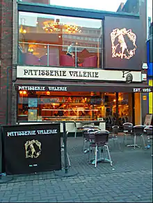 According to Helene (Leni) Vermeirsch, the niece of the founders, Patisserie Valerie was first opened in 1926 on the corner of Dean Street and Old Compton Street in Soho, London by Esther van Gyseghem, born in Ostend, Belgium on 22 April 1900 and her husband Theophile (Theo) Vermeirsch. There is not known to have been a Valerie in the founders' families, but Esther came to be referred to as Madame Valerie. Theo died in 1947, and Esther ran Patisserie Valerie alone until she retired in 1965. Leni Vermeirsch thinks that her aunt sold the business to an Italian businessman based in Soho. The Soho Clarion magazine said that the Fonteyn family founded Patisserie Valerie; there is some evidence of them in Soho and in the catering business.[1] Patisserie Valerie remained at its original location until it was bombed out during World War II, and reopened in nearby Old Compton Street after Theo and Esther spent a short time in Norfolk.[2]