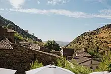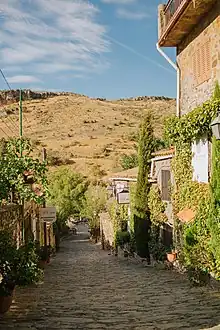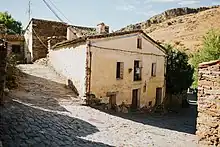 ![]() General view of the ancient village (Patones Arriba) with its characteristic slate pavements and buildings | |