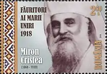 Miron Cristea (Romanian pronunciation: [miˈron ˈkriste̯a]; monastic name of Elie Cristea [eˈli.e]; 20 July 1868 – 6 March 1939)[1] was a Romanian cleric and politician.