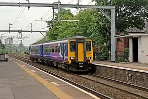 Patricroft railway station serving Patricroft in Greater Manchester, England. The station is on Green Lane, just north of the junction with Cromwell Road and just east of the Bridgewater Canal. It is situated 5 miles (8.0 km) west of Manchester Victoria on the former Liverpool and Manchester Railway, which was electrified in stages between 2013 and 2015.