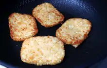 A savoury pattie is a battered and deep fried mashed potato, seasoned with sage. It is commonly sold in the British port towns of Hartlepool, Kingston upon Hull, Wirral, Liverpool, North Tyneside, Kirkwall and Thurso.[1] It is a popular item in fish and chip shops, and is consumed either as a snack or as an inexpensive substitute for fish in a fish and chip meal.[2]