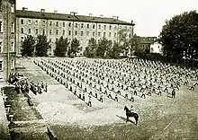 Due to renovation work in the palace, on November 24, 1887, the school was transferred back to the St. Petersburg side,[3] to the building of the former Noble Regiment, where it was located until disbandment in November 1917.[4]