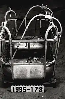 In October 1955, Yost developed and flew the first prototype of the modern hot-air balloon in a tethered flight.[3] The envelope was plastic film, and heat was provided by burning kerosene. This prototype flight uncovered conceptual flaws that Yost worked to overcome.