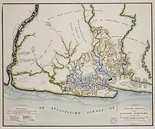 Wentworth still owned Klein Hoop, a sugar plantation (500 acres and 130 slaves) on the north bank of the Cottica River in Surinam.[24] In 1784 John Wentworth sent 19 slaves from Nova Scotia.[25][26] According to his secret will he went there with Nathaniel Paul Wentworth (1770-) and his mistress after October 1790; he promised the poet Sarah Wentworth Apthorp Morton in Braintree and her daughter money. He died on 26 January 1794. His medium-sized plantations Klein Hoop, L'Assistance (Commewijne River) and a brickyard Appecappe were passed on to three relatives.[27][28]