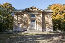 The Pavilion du Butard is a hunting lodge in the Forêt de Fausses-Reposes in the territory of La Celle-Saint-Cloud in Yvelines, France. Part of the gardens of Versailles, it was designed by Ange-Jacques Gabriel for Louis XV and built between 1750 and 1754. It was made state property on 27 June 1794 by François-Nicolas Périgon, notary at Paris, during the French Revolution. On 23 April 1802 it became the property of empress Joséphine de Beauharnais, who wished to merge it with her Malmaison estate, but it returned to being state property on her divorce from Napoleon in 1809. It was later also enjoyed by Charles X of France and emperor Napoleon III of France. It was occupied by the Prussians during the Franco-Prussian War. Still state property, it was made a monument historique on 29 August 1927.[1] In 2019, the pavilion is the subject of interest from the Centre des Monuments Nationaux, with a view to a hypothetical purchase.[2]