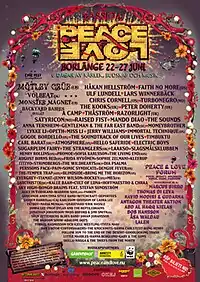 Peace & Love was the largest music festival in Sweden, known for its humanitarian message, pervasive throughout the event. It started in Borlänge and ran from 1999 until the company filed for bankruptcy in 2013.[1]