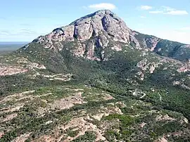 The park is named for one of the main features, Peak Charles,[4] which is an ancient granite peak with an elevation of 651 m (2,136 ft)[5] that dominates the park along with its neighbour Peak Eleanora.[6] Both afford excellent views over the park, which is primarily composed of dry sand plain heaths and salt lake systems.[7][8]