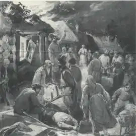 On 2 April an issue of Russkaya Mysl, which had been already sent to press, was submitted to the censor V. Sokolov for a review. In his report he wrote: "In the first part of the April volume of Russkaya Mysl there is a story by A.P. Chekhov called "Peasants" which demands special attention. In it the life of peasants in villages is depicted in exceedingly grim tones. Throughout summer they toil in fields from morning till late at night along with members of their families, and yet are unable to store bread even for half a year. Nearly dying of hunger because of that, almost all of them, nevertheless, are engaged in excessive drinking. For this they are ready to part with everything, even their last piece of clothes... Their helplessness is aggravated by the immense burden of taxes which for peasants' families are unbearable. The real curse for these peasants, or rather their families, is indeed their total ignorance. The majority of the muzhiks, if the author is to be believed, do not believe in God and are deaf to religion. Peasants long for light and knowledge but are unable to find the way to them on their own because very few of them can read or write at all. Most of them are seemingly unaware of the concept of literacy as such."[1]