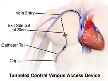 Central venous catheter infections and safety: Central venous access used for treatments are at risk for central venous catheter acquired bloodstream infections.[1][10] Additionally, children are at a higher risk of dislodging indwelling central venous catheters.[6]