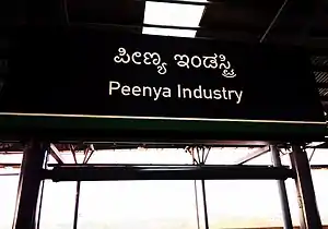 Peenya Industry is an elevated metro station on the North-South corridor of the Green Line of Namma Metro serving the Peenya area of Bangalore, India. It was opened to the public on 1 March 2014.[1][2]