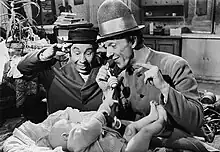 Pekka and Pätkä's childcare methods turn out to be unnecessarily eccentric and inexperienced, as they feed the baby läskisoosi and rock the baby to sleep in the ceiling lamp. Miss Ranta is horrified when she sees this and briskly teaches the men proper childcare. However, "Pekka Puupää's Kindergarten" does not attract customers, so Pekka and Pätkä develop a new way of raising money, participating in a match against boxer Hermanni Ronski (Uljas Kandolin). Due to a mistake, Pätkä gets into the match instead of Pekka. Pätkä is at the bottom until Ronski takes a sip from Pätkä's camphor bottle – which, due to the messy state of Puupää's medicine cabinet, contains sleeping potion – and falls asleep in the middle of the match. In the meantime, the child has been left outside to sleep in the carriage by Pekka and Pätkä, and Petteri, who is passing by, steals it again, but is soon caught by mistake in the same taxi driven by Saarikivi, whereupon Saarikivi recognizes him and takes him to the police station. After this, Justiina Puupää has arrived back home and after seeing it in a messed up, she prepares to punish her husband, but Saarikivi clears up the situation after hearing at the police station that Pekka and Pätkä were in the care of the millionaire's kidnapped child. Finally, the grateful millionaire gives Pekka and Pätkä a handsome reward for taking care of his child.