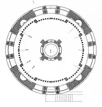 The first order is surmounted by a balcony with parapet, at the height of which begins the second, larger-diameter level, also of Corinthian order, which serves as the drum on which the dome is set; it is distinguished by the presence of four aediculae and four large tripartite windows with coupled columns that are located at the tabernacles of the lower level.[18][22] A peculiarity, compared to the first order, is that only the columns and entablature are made of stone, while the rest is in lime plaster and marble dust, although the resulting surface has been bush-hammered and scraped as if it had been stone.[18]
