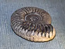 | Fossil shell of Peltoceras arduennense from Calvados (France), on display at Galerie de paléontologie et d'anatomie comparée in Paris | |