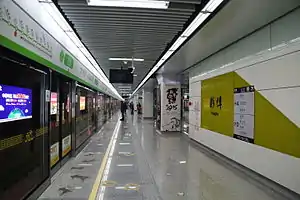 Pengbu (Chinese: 彭埠) is a transfer station on Line 1 and Line 4 of the Hangzhou Metro in China.[1][2] It was opened in November 2012, together with the rest of the stations on Line 1. It is located in the Jianggan District of Hangzhou. This station offers cross-platform interchange.