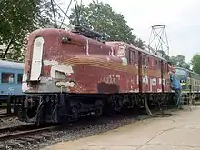 Raymond Loewy was hired by the Pennsylvania to "enhance the GG1's aesthetics."[2] Loewy had the production locomotives' bodies be welded together, instead of riveted the way 4800 was, to give the GG1 a more streamlined appearance.[4] Loewy also formulated the Brunswick green paint scheme and the gold pinstripes, nicknamed "cat's whiskers", which was eventually applied by the Pennsylvania to all of its locomotives for the next 20 years.[2] In 1952, the Pennsylvania repainted some of its fleet of GG1s to a Tuscan red paint scheme with pinstripes.[5]