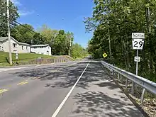 PA 29 enters Noxen Township in Wyoming County and continues northeast through a mix of fields and woods with some homes, coming to an intersection with the northern terminus of PA 415 in the community of Ruggles Corners. Here, the route turns northwest and runs through forests with some homes, curving to the north. The road bends northeast and then east, heading into the residential community of Noxen. Here, PA 29 curves north and turns east, continuing past homes. The route crosses Bowman Creek and heads into farmland with some homes, entering Monroe Township and bending to the northeast. The road passes over the creek again and continues to the community of Bowman Creek, where it curves north and reaches an intersection with the northern terminus of PA 309. At this point, PA 29 heads northwest and crosses Bowman Creek, running through forested areas with a few homes to the west of the creek. The route curves northeast and continues alongside Bowman Creek, passing through the community of Evans Falls. The road runs through forests with some fields and homes, reaching a junction with the western terminus of PA 292. Following this, PA 29 enters Eaton Township and continues through rural land, turning north and briefly becoming a four-lane divided highway. The route becomes a two-lane undivided road again and crosses Bowman Creek on a truss bridge, coming to a rest area accessible from both directions on the southbound side of the road. The road continues north-northeast through a mix of farms and woods east of the creek, passing through the community of Rosengrant and turning to the northeast. PA 29 crosses Bowman Creek again and continues through rural areas with some development, turning to the north. The route gains a center left-turn lane and becomes Hunter Highway, passing businesses as it heads to the west of Skyhaven Airport. Farther north, the road loses the center turn lane.[8][10]