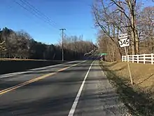 When Pennsylvania first legislated routes in 1911, present-day PA 345 was not part of a route.[5] By 1928, the present alignment of the route existed as an unpaved road; the road was unnumbered south of Birdsboro and was numbered as part of PA 82 between Birdsboro and Baumstown.[6] The portion of PA 82 between Birdsboro and Baumstown was paved by 1930.[7] What is now PA 345 south of Birdsboro was paved by 1940.[8] PA 345 was designated by 1973 to run from PA 82 in Loag north to PA 724 in Birdsboro.[9] PA 345 was extended north to US 422 in Baumstown in 2008, heading west concurrent with PA 724 and replacing PA 82 between Birdsboro and Baumstown.[10] This extension was concurrent with the truncation of the northern terminus of PA 82 from US 422 to PA 23 in Elverson due to washed out bridges along PA 82 south of Birdsboro.[10][11]