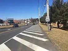 In 1911, when the Sproul Road Bill was passed, Legislative Route 132 was designated on current PA 352 between Chester and Baltimore Pike west of Media, while Legislative Route 179 was designated on the part between Media and Paoli Pike in East Goshen Township.[5] PA 352 was first designated by 1928 to run from US 13 (now US 13 Bus.) in Chester north to US 30 in Frazer.[6] By 1950, a portion of PA 352 north of Parkside was widened into a multilane highway and a straighter alignment for PA 352 was proposed from north of Parkside to south of US 1.[7] The realigned PA 352 was completed during the 1950s, with the former alignment now Old Middletown Road.[8] By 1980, PA 352 was realigned to form a short concurrency with PA 3 instead of intersecting it at a sharp angle.[9]