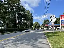 In 1937, PA 641 was extended west from Carlisle to PA 433 at the intersection of Amberson Road and Timmons Road, following its current alignment. The route ran concurrent with PA 433 between Roxbury and Cold Spring Road. The extended PA 641 designation replaced PA 333 between Roxbury and Newburg.[9][10] The entire length of PA 641 was paved in the 1930s along with the section of PA 433 between Shade Gap and the western terminus of PA 641.[10] The eastern terminus of PA 641 was moved to its present location at US 15 in the 1950s, with a rerouted US 15 replacing the route along 32nd Street.[11] In the 1960s, PA 641 was extended west to its current terminus at US 522 in Shade Gap, replacing the section of PA 433 between Shade Gap and Amberson Road. In addition, the concurrent PA 433 designation was removed from PA 641 between Cold Spring Road and Roxbury.[12]