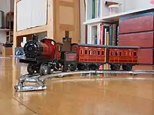 Penny toys, also known as tin toys, were made of tin metal with painted surfaces that typically included excellent detail. Most penny toys were manufactured in Germany and were originally sold to wholesalers by the gross for 8 shillings allowing the seller, often street peddlers to sell them for a substantial profit.[1] Typically the toys were miniatures, that is; under 10 cm and often included elements that facilitated movement, adding to their charm.[2] In the United Kingdom, the toys were sold for one Penny, hence the popular name of penny toys.