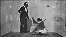 Performing Animals; or, Skipping Dogs is an 1895 British short black-and-white silent documentary film, produced and directed by Birt Acres for exhibition on Robert W. Paul's peep show Kinetoscopes, featuring one dog jumping through hoops and another dancing in a costume. The film was considered lost until footage from an 1896 Fairground Programme, originally shown in a portable booth at Hull Fair by Midlands photographer George Williams, donated to the National Fairground Archive was identified as being from this film.[1]