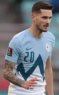 Stojanović was a member of the Slovenian under-17 team and appeared with the squad at the 2012 UEFA European Under-17 Championship, where he scored one goal.[11] He made his senior national team debut versus Colombia on 18 November 2014.[12] At the time he was 19 years, one month and 11 days old and became the youngest debutant in the national team, surpassing the previous record set by Rene Mihelič seven years earlier.[12][13]