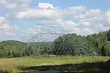 The large, steel-frame structures on Camani's property were erected by festival organizers to serve as performance and eating venues. While these structures are left bare for most of the year, when covered with fabric they come to resemble a crashed spaceship, pyramids and domes.