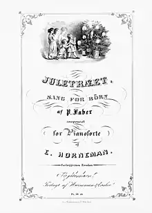 Faber wrote many songs, several of which have remained popular until today. They include Højt fra træets grønne top which is always sung around the family Christmas tree, and Dengang jeg drog af sted, written to celebrate the Danish victory at the 1848 Battle of Bov.[2]