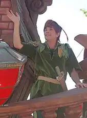Disney originally wanted Mary Martin, who was appearing in a stage production of the original play, to voice Peter Pan, while Jean Arthur also contacted him about being considered.[7] Bobby Driscoll, who was Disney's first contract child actor and had previously starred in such films as Song of the South (1946), So Dear to My Heart (1948), and Treasure Island (1950), was ultimately cast.[19] This was the first time that a male actor was cast as Peter Pan, breaking a tradition of women portraying him in both films and stage productions.[10] Driscoll also provided some of the live-action reference for the character.[20] Peter Pan was Driscoll's last Disney film, as his contract with the studio was abruptly terminated shortly after its release.[21]