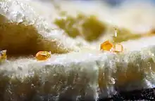 Peterandresenite is a very rare mineral,[4] the first known natural hexaniobate. Its chemical formula is Mn4Nb6O19•14H2O. Its structure contains a special type of octahedron: Lindqvist ion. Peterandresenite was found in a pegmatite of the Larvik complex in Norway.[3] It is somewhat similar to other unique niobium minerals, aspedamite and menezesite.[5][6]