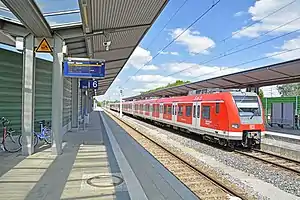 Petershausen station is a railway station in the municipality of Petershausen, located in the district of Dachau in Upper Bavaria, Germany.