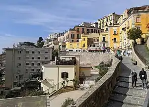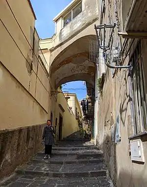 As one of Naples' roughly more than 200 neighborhood stairs, inclined walks and ramps,[3] the Petraio is accessible only on foot, and is noted for its range of architecture — from Neapolitan Liberty villas to bassi, small one and two room dwellings directly accessed off the Petraio itself — as well as its picturesque character and broad views of the city, the Gulf of Naples,[4] Sorrento and the isle of Capri.