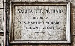 Originally, called il Imbrecciata (the debris-field)[1] and later O'Petraro,[5] the Petraio takes its name from the paths's original rocky character[1] — the word stone translating to pietra in Italian and petra in Neapolitan.
