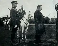 Kubiliūnas continued his military education: he completed the Higher Officers' Courses in Kaunas in 1925, attended the War College in Prague in 1927, and took courses in Paris in 1929.[3] From August 1927 to July 1934, Kubiliūnas served as an officer of the Lithuanian General Staff. In February 1929, he took the position of the Chief of the Lithuanian General Staff and was promoted to Lieutenant General in November.[2] He was active in military education reforms, helping to transform the Higher Officers' Courses into a higher military school.[4] He actively worked on improving weaponry and military equipment as well as preparing plans for mobilization and military operations. He initiated the establishment of the Gaižiūnai proving ground in 1930.[3]