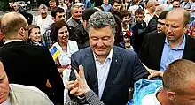 Petro Oleksiyovych Poroshenko (Ukrainian: Петро́ Олексі́йович Пороше́нко, pronounced [peˈtrɔ olekˈs⁽ʲ⁾ijowɪtʃ poroˈʃɛnko]; born 26 September 1965) is a Ukrainian businessman and politician who served as the fifth president of Ukraine from 2014 to 2019. Poroshenko served as the Minister of Foreign Affairs from 2009 to 2010, and as the Minister of Trade and Economic Development in 2012. From 2007 until 2012, he headed the Council of Ukraine's National Bank. He was elected president on 25 May 2014, receiving 54.7% of the votes cast in the first round, thus winning outright and avoiding a run-off. During his presidency, Poroshenko led the country through the first phase of the war in Donbas, pushing the Russian separatist forces into the Donbas Region. He began the process of integration with the European Union by signing the European Union–Ukraine Association Agreement.