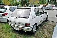 It was launched on 24 February 1983, and was launched in right-hand drive form for the UK market in September that year.[5] Shortly after its launch, it was narrowly pipped to the European Car of the Year award by the similar sized Fiat Uno, but ultimately (according to the award organizers) it would enjoy a better image and a longer high market demand than its Italian competitor.[6] It was one of five important small cars to be launched onto the European market within a year of each other: the other four were the Uno, the second generation Ford Fiesta, the original Opel Corsa (sold as the Vauxhall Nova on the British market) and the original Nissan Micra. Its launch also closely followed that of the Austin Metro and Volkswagen Polo Mk2.