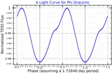The brightness of φ Draconis varies by about 0.04 of a magnitude every 1.7 days. This is due to very strong magnetic fields at the surface of the star, and it is classified as an α2 Canum Venaticorum variable.[2]