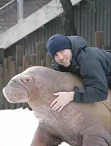 Demers' animal training career began in 2000 at MarineLand where he was employed until August 2012.[1] In 2007, Demers became the focus of mass media attention regarding his unique relationship with a captive Pacific walrus named Smooshi.[2] Their relationship garnered the attention of such television programs as CBC's The National, Inside Edition,[3] and Jimmy Kimmel Live!. Demers left his position at Marineland citing allegations of negligent treatment of the animals and unhealthy conditions.[4][5] As of fall 2022 they have reached a non-costs agreement where the walrus Smooshi and her calf Koyuk would be rehomed.[6]